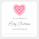 Baby shower bookplate pink valentine heart square sticker