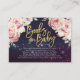 Elegant Watercolor Natural Boho Floral Feather and Gold Handwritten Script on Purple Sparkle Bokeh Lights Background.