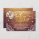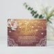 Faux Gold Foil Script Elegant Floral and String Lights with Lace Decorations on Rustic Wood Background.