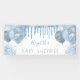 For an elegant Baby Shower. A chic whitebackground. Decorated with faux glitter drips, paint dripping look, glitter dust and blue and silver coloured balloons. Personalise and add a name. Perfect both as a welcome banner or as party decor.