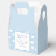 Celebrate the arrival of your little man at your baby shower with this customisable favour box, featuring a cute cloud-adorned blue sky background, with line art of a peaceful sleeping baby.