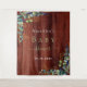 Rustic brown wood as background. Decorated with green watercolored eucalyptus leaves, sprigs, greenery and a faux gold leaves. Personalise and add the name of the mum to be and a date. White and green letters. Can be used as a baby shower welcome banner, as party wall decoration or as a photo booth backdrop.