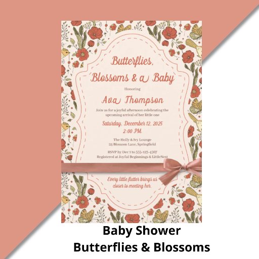 Elegant and poetic baby shower design featuring delicate butterflies and soft blossoms. Perfect for a chic and minimalist celebration honouring the mummy-to-be. Soft pastel colours and floral motifs make it ideal for welcoming a new baby with love and style.