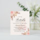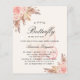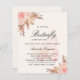 For a modern boho style baby shower. A beige background. Decorated with pink florals, roses, pampas grass and a butterfly. Personalise and add a name and party details.