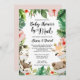 Celebrate the upcoming arrival of your precious baby with this elegant, chic and pretty 'Baby Shower by Mail' Invitation featuring cute friendly jungle safari animals with masks on beautiful watercolor tropical florals with greenery jungle leaves background. This template is perfect for those who live a long distance from loved ones, but still wish to make it special for mother or parents to be by showering them with love and gifts. All the texts are pre-arranged for you to personalise easily and quickly with your baby shower details.