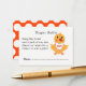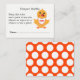 Sweet little yellow chick with a baby bib on reminds me of baby bath ducks The reverse of the card has a pattern of big spots in orange and white. Suitable for any gender baby girl or baby boy. An adorable cute baby shower diaper raffle ticket which is easy to customise with your personal details at no extra cost