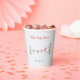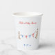 These customisable paper cups feature any two lines of text in the colour matching the bunting flags held by a cute kangaroo and an adorable giraffe.