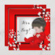Elegant Baby Shower Cute Baby Red, Red with White Blossoms, Asian Cherry Blossom Flowers with Black and White "it's a Boy!"