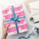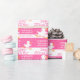 Cute baby shower wrapping gift paper, featuring a cute running white duck character. Pink and white baby Girl shower custom wrapping paper. Personalise with your baby shower names and own message. Currently reads Baby Shower Congratulations on your baby girl. A great way to customise your baby girls showering gifts. Uniquely designed by Sarah Trett.
