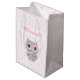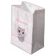 Baby Shower Cute Pink Owl Gift Bag. Pink & grey little baby owl wearing a bow, pink polka dots. Pink custom name. Cute & lovely, suitable for a baby shower or any other occasion related to a newborn baby girl.
