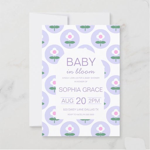 Baby Shower Cute Purple Pink Daisy Flower Magnet Invitation illustrated by international designer, Kathrin Legg