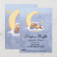 Baby shower Diaper Raffle with "Bring a pack of diapers in any size" card featuring an adorable bunny sleeping on the moon.