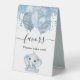 A favour sign for a baby shower, celebrating a baby boy