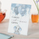 Baby Shower elephant boy blue balloons white gifts Pedestal Sign