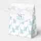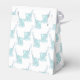 Cute baby shower favour box, featuring cute elephant blowing heart shaped bubbles pattern. Pretty aqua blue baby boy shower elephant design. Personalise with your baby shower honours name. Uniquely illustrated and designed by Sarah Trett.