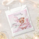 Favour Bags Baby shower featuring an adorable watercolor illustration of a teddy bear in a cute pink dress.