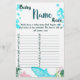 Baby Shower Game Card Baby Name Race