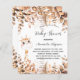 For a baby shower, gender neutral. A white background. a cute little baby giraffe and golden eucalyptus and woodland ferns. Personalise and add the name of the mum to-be's name and party details. The name and the text: Baby Shower are written with a hand lettered style script