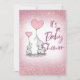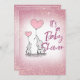 This sweet and pretty baby shower announcement features a pink glitter gradient background with a gradient glitter frame. The phrase "It's a Baby Shower" is printed in a whimsical, elegant pink glitter design font. A mummy ad baby elephant holding pink heart balloons are placed in the centre. towards the right portion.