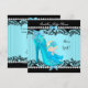 Blonde haired Baby Girl in High Heel Shoe, Cute Couples Baby Shower. Stiletto Baby Girl Teal Blue and Black Lace White Pearl and black Lace. Couples baby shower Pearl Lace Bow Ribbon invitation, new baby, girl See below.