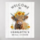 Baby Shower Highland Cow Welcome Sign - featuring an adorable rustic highland cow adorned with sunflowers on a whitewashed wood background.