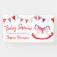Pretty hand-painted purple and red rocking horse with stars and graphic bunting baby shower or new baby personalised banner. Customise with your own words and honouring name/s. Other matching items are available. Original whimsical kids hobby rocking horse watercolor painting and bunting graphic design by Sarah Trett for www.mylittleeden.com on Zazzle.