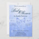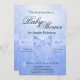Baby shower invitation for a baby boy in streaming cloud blue colours with a ribbon and bow.