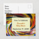 Go bright and vibrant with your baby shower invitations. The background is a vivid swirl of colour with a large solid rectangle for your text. Easily and quickly personalise this inexpensive announcement postcard. The back of the postcard offers plenty of room for event details.