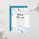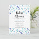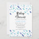 Invite your guests to your baby shower with this fun blue abstract paint Baby Shower invitation with navy blue and aqua paint dashes and a matching patterned background.
