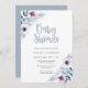Invite your guests to your baby shower with this beautiful Baby Shower invitation with lovely blue and purple watercolor florals and modern handwritten script.