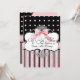 This Baby Shower Invitation features elegant French copperplate swirls, pink and green dots in the background, a ruffled ribbon and a beautiful hand painted pink bow. All made from original artwork by Audrey Jeanne Roberts. The result is a beautifully contemporary Baby ensemble. On the reverse side there is the same dot pattern and a bracket revealing a place for your baby's photo. You can easily add your own picture or change the message. YOU MIGHT ALSO ENJOY: