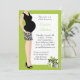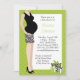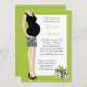 This unisex green baby shower invitation features a pregnant mum to be wearing a black and white zebra print skirt with polka dot gifts.
