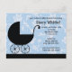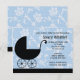 This cute Baby Shower invitation is just waiting to be customised with your details. This blue and black modern design features a stroller and a floral motif.