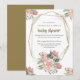 Beautiful and delicate baby shower invitation with pastel handpainted watercolor roses, hydrangeas and peonies in shades of pink, accented with eucalyptus leaves. Your wording is surrounded by a gold frame with confetti like sparkles (printed flat - not a foil print) Easily personalise this elegant invitation with your baby shower details.