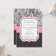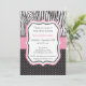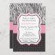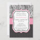 A baby shower invite with zebra print and polka dots.