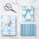 Make that baby shower extra special with this fun wrapping paper sheet set featuring one sheet with blue elephants with balloons and “It’s A Boy” in blue text, one sheet of cute blue elephants and one sheet of co-ordinating blue stripes.