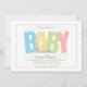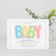 A unisex invitation featuring the word "BABY" in pastel colours. Suitable for unknown gender showers, twins and multiples too.