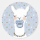 Sweet baby shower gift stickers, party favour labels and envelope seals for birth announcements or shower invites featuring a little llama with a pacifier.