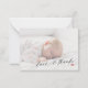 Minimalist stylish chic baby shower elegant hand lettered calligraphy script personalised small thank you note card with transparent overlay photo, your custom text, and signature on both sides.