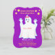 Baby shower lovely ghost Invitation. There is gold polka dot pattern on royal purple background on the back side. All texts and numbers are ready to be personalised.