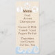Personalise this 2 sided, baby shower food menu. Simply delete text on both sides of menu card and replace with your own words. Choose your favourite font style, colour, and size.