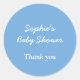 Baby Shower Minimalist Blue Thank You Sticker, the name of the mum-to-be is easy to personalise online before ordering some of these stickers.