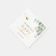 A chic white background decorated with green watercolored eucalyptus greenery, leaves, a faux gold sprig and a cute happy smiling bumble bee. Personalise and add the name of the mum, mummy to bee and the date. Black and golden coloured letters. The text: Baby Shower is written with a trendy hand lettered style script.