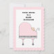 Creative music themed baby shower invites featuring cute baby girl in a pink baby grand piano shaped like a stroller.