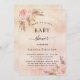 For a modern boho style baby shower. A rose gold, blush pink rustic faux metallic looking background. Decorated with rose gold and pink florals, roses, pampas grass. Personalise and add a name and party details.