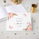 A beautifully presented guest book which came with a lovely gift box for storage. The book was hard back so stayed fresh after being handed around to all our wedding guests. We had lots of compliments about the design which went perfectly with our theme. Perfect, no issues at all with the printing. It arrived on time and came well packaged.