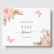For an elegant and modern baby shower. A white background. Decorated with rose gold, pink florals, pampas grass and butterflies. Personalise and add a name and date.