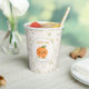 A sweet watercolor Little Cutie baby shower design with a smiling orange, white blossoms, sage vines, and a soft background. Perfect for citrus baby showers.