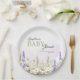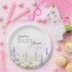 Baby Shower Paper Plate featuring an adorable watercolor fawn nestled among flowers.