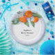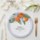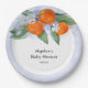 Baby Shower Party Plate decorated with an illustration of a delicious tangerine branch with flowers in a watercolor sketch style.